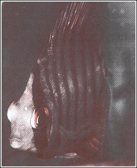 Photo 1: When a fish exhibits signs of emaciation, (i.e. caved in sides, eyes sunken in) it is possibly being starved by intestinal flagellates (a protozoa such as Spironucleus or Hexamita) or intestinal worms (tapeworm, nematode, capillaria, oxyuridia). Generally the worms or flagellates are carried by fish, expelled in the feces and picked up by other fish by eating infested feces. The feces may contain worms or eggs. Positive identification is made through the use of a microscope on the feces.