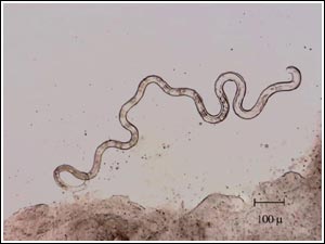 Figure 1: Photomicrograph of a Capillaria nematode showing typical nematode shape.