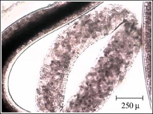 Figure 13: Close up of a Camallanus sp. female showing larvae inside.