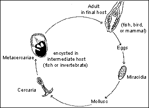 Figure 18: An illustration of the Digenean trematodes life cycle.