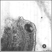 The life stage most commonly observed in fish is the metacercaria, which encysts in fish tissues ( Figure 19 ). Again, metacercaria that live in fish rarely cause major problems. However, in the ornamental fish industry, digenetic trematodes from the family Heterophyidae, have been responsible for substantial mortalities in pond-raised fish. These digeneans become encysted into gill tissue and respiratory distress is eminent. Another example of a metacercaria that could cause problems in cultured fish is the genus Posthodiplostonum or the white grub. This has caused mortalities in baitfish, but usually the only negative effect is reduced growth rate, even when the infection rate is high. In cases where mortalities occur, there are unusually high numbers in the eye, head, and throughout the visceral organs. Another fluke is Clinostonum, often called yellow grub. It is a large trematode and although it does not cause any major problems for fish, it is readily seen and will make fish unmarketable for aesthetic reasons. The best control of digenean trematodes is to break the life cycle of the parasite. Elimination of the first intermediate host, the freshwater snail is often recommended. Copper sulfate in ponds has been used with limited success and is most effective against snails when applied at night, due to their nocturnal feeding activity. For Florida ornamental fish growers a chemical for snail control, Bayluscide, is available. This is a Restricted Use Pesticide and access to it is controlled. For more information, contact your aquaculture Extension specialist or the University of Florida Tropical Aquaculture Laboratory in Ruskin, Florida. more ... |