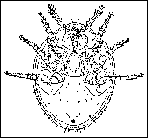 Figure 2: The earthworm mite, Uropoda agitans. Also called Fuscuropoda agitans. Ventral view of female (Courtesy of Edward Baker). more... |