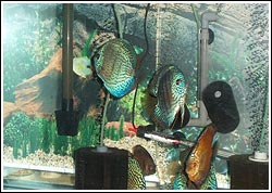 As for feeding, I use a good deal of Tetra Bits and a ton of California Blackworms! Last year, I broke an old rule and tried some from Dan! Damn- the fish loved them! And they were alive the next day - and the next - and on and on and on. I was under the mistaken impression that CBW would give my fish all the terrible diseases in the world. DO NOT BELIEVE THIS! They are the best stuff in the world for Discus! I was very relieved to see how well accepted they were when I began reading the forums!