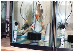 My future plans currently include more growout tanks and an auto WC system for them and then the rest of my large tanks. I will continue to do Breeder tanks by hand, at least for the forseeable future. My favorite strains tend to be blue fish. I have Blue SS, and Fantastic Brilliant Blues, and Red Turks. I am working hard to add some red melon strains also. I do have White Butterflies, and they have had wigglers, but not attachment, but again, they are young fish. Another favorite pair of mine are a pair of Red Diamonds I purchased from Dennis Hardenberger. Problem is - I think I broke them! Still working on them though - I am very patient.