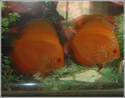 Ari: Scott wants a fish room, or a shed for his tanks. At the moment, we have them scattered all over the house... When we finally settle and buy a house, we would only have 1 big tank in the house (hopefully a huge 8foot tank or something - and that my big dream at present), and the rest can go to the fishroom. I don't think it will be big set-up though. Scott: We'd like a "dream tank" about 8' long by 3' wide by 3' deep (500gal), wet/dry filtration, planted and populated with discus. Knowing Ari, she would want wilds, and in a planted tank, I'm inclined to agree with her. As long as there are a few blue diamonds in there as well - they are my favourite non-pigeon, non-white strain I would need another tank for the pigeons - BB with potted swords (maybe). The pigeons definitely look cleaner in a BB with a pale background. Two discus display tanks would do us I think. THEN I'd need a fishroom, with brood tanks and growout tanks, nothing too ambitious, just enough for 6 - 10 pairs. I'd have to automate the waterchanges, and I have plenty of ideas that I'll use when this eventuates. We are still renting, so this is our plan to be implemented when we buy a house. And fishroom space is high on the list of residential selection criteria. JE: Do you think you spouse likes the discus better than you? LOL! Ari: Definitely not.... Well I hope not anyway. I think we are both in it together, so we are luckier than most people that we can share the hobby and enjoy it together. There is a downside though, there is no voice of reason that will stop us from buying more fish and more fish and more fish...lol. I am too scared to even count how much money we have spent in this hobby. Scott: Nah, I'm still her number one pet! And it's not as much work to look after me - most of the time JE: So, important news, we hear through the grapevine that you two are expecting! Congratulations! Is there any chance that you are going to name the baby after one of the moderators here?? Ari: Yes... we are having a baby in late May/early June. It was rather unexpected. April actually knew that I was pregnant before I did...lol. I complained that I was tired all the time, and she told me that I might be pregnant. I said 'no way', cause we were not planning a baby for another year or two and I thought I have been careful. Well, a few days later I went to get those test kit and there it was... I was pregnant. Scary and exciting at the same time!! The baby was not planned, but we could not be happier nonetheless... About names, Scott and I have picked a few boys and girls name. We decided not to find out about the gender of the baby. It will be a surprise for us and for everyone. And also, we have decided that we would not tell anyone about the names either...lol. One thing for sure, the name won't be a traditional western name, cause our baby won't be traditional western baby. We will definitely let everyone knows when the time comes.... Scott: Yes it's true, we have a wriggler about to hatch in late May / early July. So that means April is out of the running (Sorry Pril!!) As far as names go, all we want is a name that is pronounced the same in English as it is in Indonesian. So you'll have to wait and see, just like everyone else!! more... |