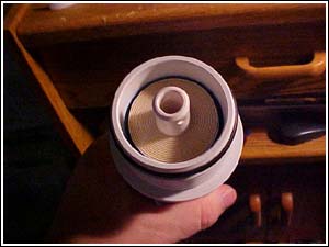 Photo 13: One of the cheapest but most important parts of the RO unit is the flow restrictor. Without it, the unit doesn't work. The flow restrictor provides the pressure that makes the unit work. Flow restrictors are precision calibrated to allow only a certain amount of water to pass in a set time period. If improper sizes are used, the unit will not have enough pressure to push water through the membrane or will not have enough waste water flow to keep the membrane clean of contaminants.