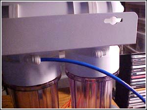 Photo 14: On other RO units the flow restrictor is either inline (looks like a cylinder with fittings on either end) or in the waste water fitting of the membrane housing.
