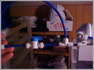 Photo 20: The feed water connector and extra hose are then connected to the unit.